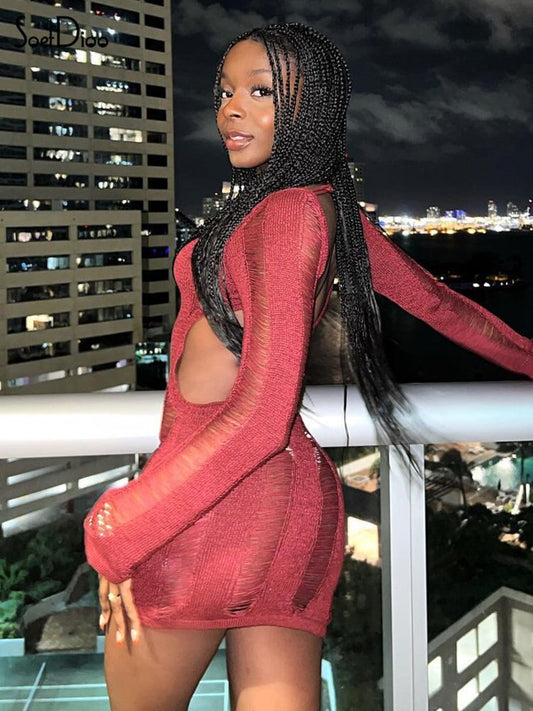 See-Through O-neck Long Sleeve Bodycon Dress