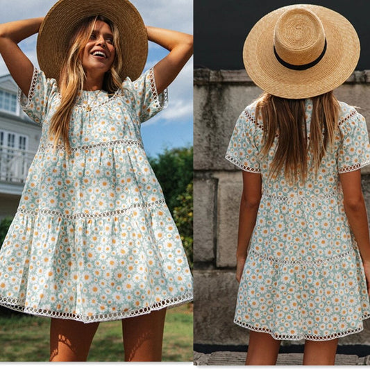 Short Sleeve Summer Floral Dress